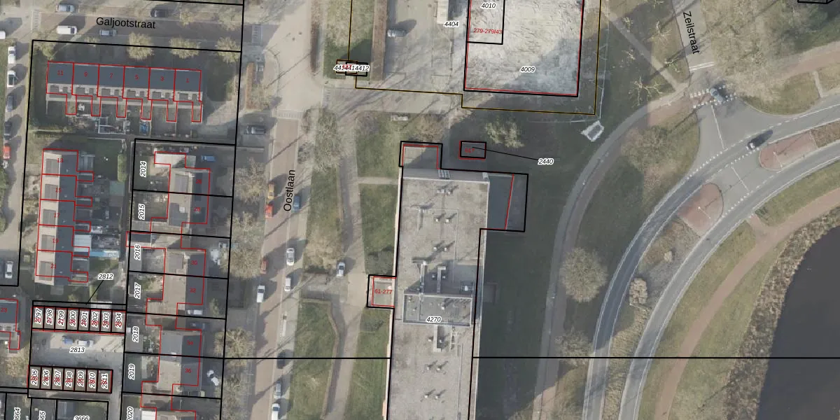 Het perceel waarop Oostlaan 119 staat heeft een oppervlakte van 1552 m². Dit is een zeer groot perceel. De perceeloppervlakte wordt geregistreerd door het Kadaster. Gedetailleerde informatie over de maten van dit perceel kunt u vinden in het rapport Kadastrale kaart met maatvoering van Oostlaan 119.