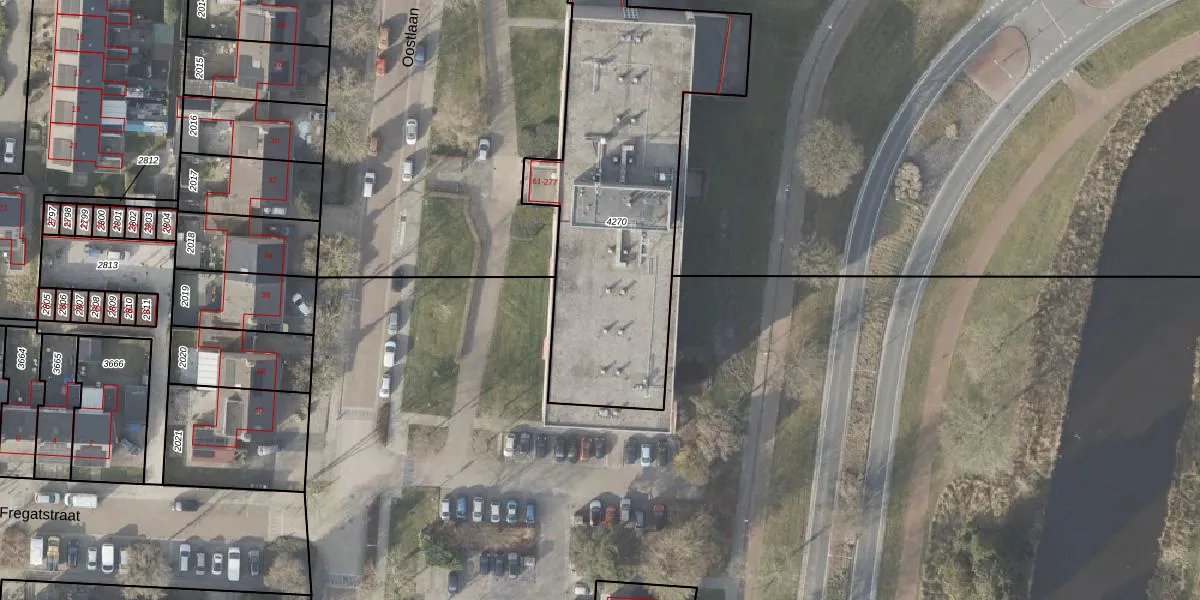 Oostlaan 185 is gelegen op kadastraal perceel VDM00C4270. Deze kadastrale aanduiding is uniek en wordt gebruikt door het Kadaster om eigendomsrechten en andere zakelijke rechten vast te leggen. Het perceel maakt onderdeel uit van de kadastrale gemeente Veendam.