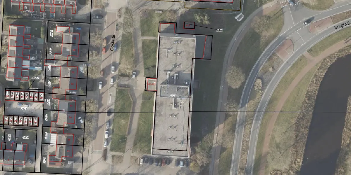 Het perceel waarop Oostlaan 215 staat heeft een oppervlakte van 1552 m². Dit is een zeer groot perceel. De perceeloppervlakte wordt geregistreerd door het Kadaster. Gedetailleerde informatie over de maten van dit perceel kunt u vinden in het rapport Kadastrale kaart met maatvoering van Oostlaan 215.