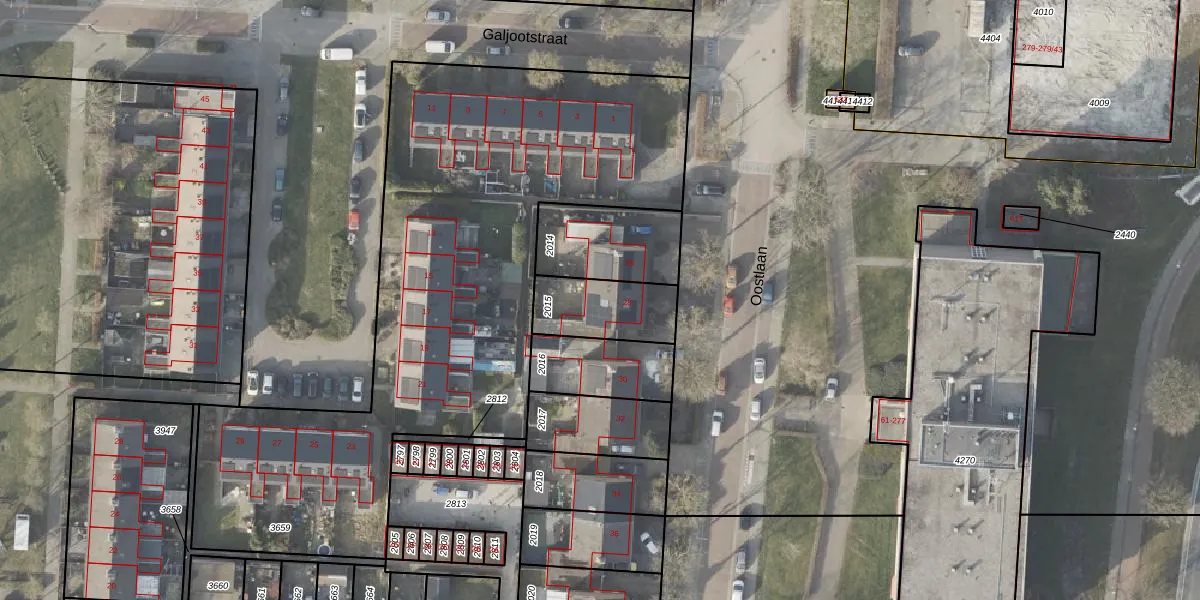 Gebruik de zoekbalk of klik op een perceel voor informatie over de adressen binnen dit perceel.
