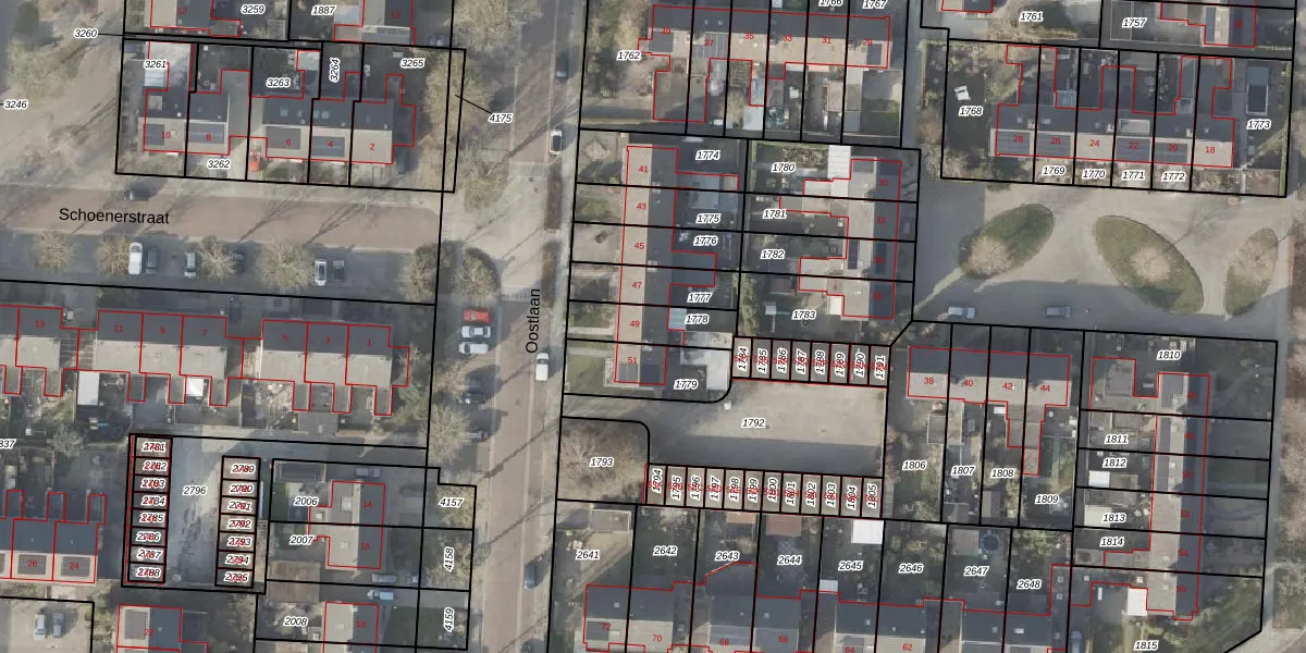 Gebruik de zoekbalk of klik op een perceel voor informatie over de adressen binnen dit perceel.