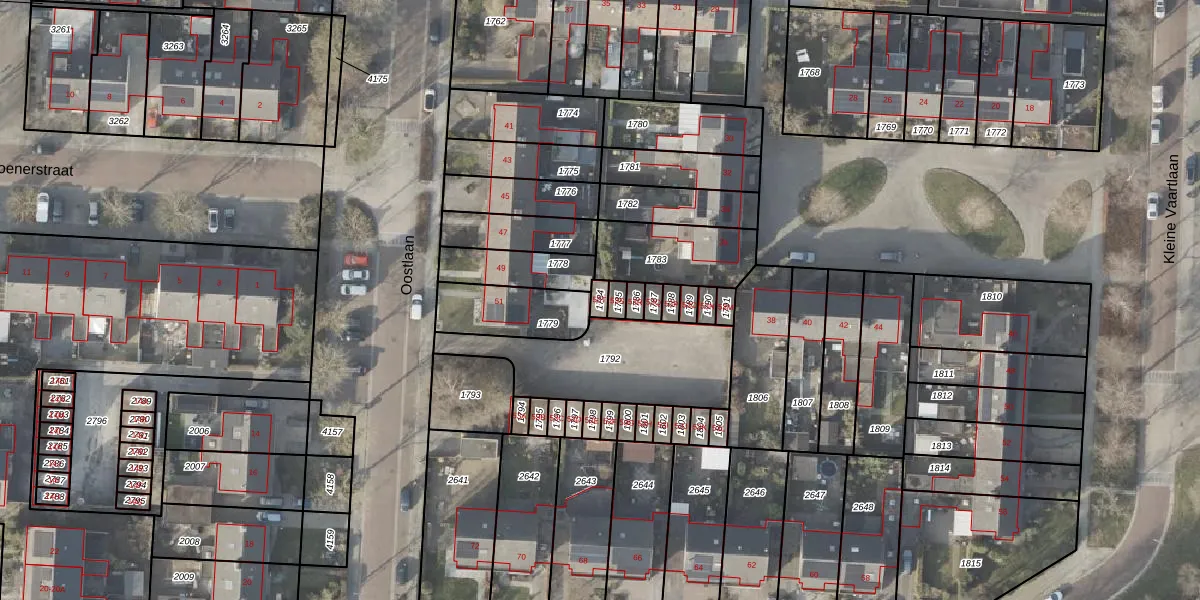 Het perceel waarop Oostlaan 53-T staat heeft een oppervlakte van 19 m². Dit is een klein perceel. De perceeloppervlakte wordt geregistreerd door het Kadaster. Gedetailleerde informatie over de maten van dit perceel kunt u vinden in het rapport Kadastrale kaart met maatvoering van Oostlaan 53-T.