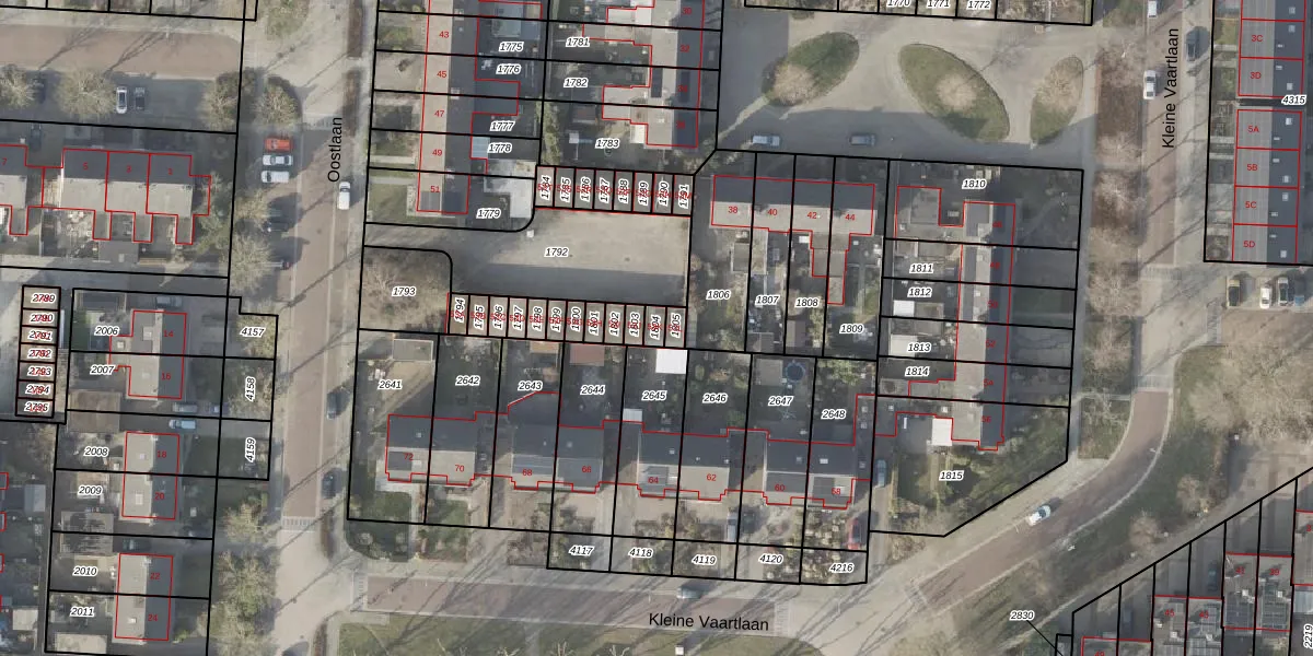 Het perceel waarop Oostlaan 53-K staat heeft een oppervlakte van 19 m². Dit is een klein perceel. De perceeloppervlakte wordt geregistreerd door het Kadaster. Gedetailleerde informatie over de maten van dit perceel kunt u vinden in het rapport Kadastrale kaart met maatvoering van Oostlaan 53-K.
