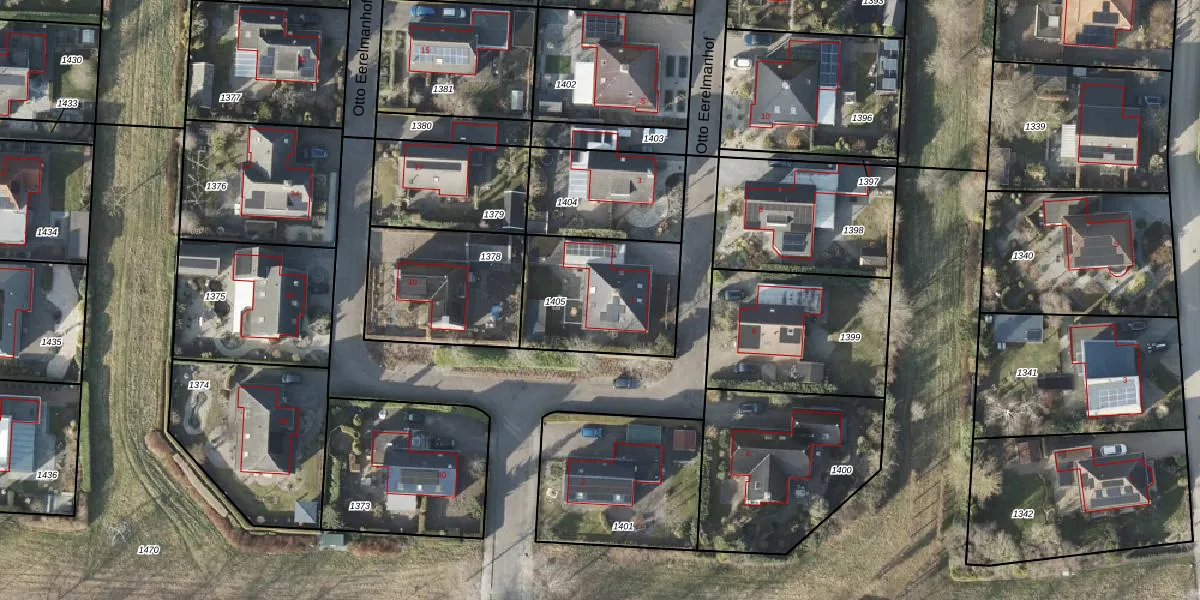Het perceel waarop Otto Eerelmanhof 1 staat heeft een oppervlakte van 493 m². Dit is een groot perceel. De perceeloppervlakte wordt geregistreerd door het Kadaster. Gedetailleerde informatie over de maten van dit perceel kunt u vinden in het rapport Kadastrale kaart met maatvoering van Otto Eerelmanhof 1.