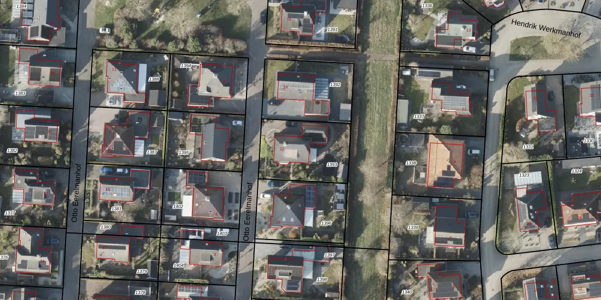 Het perceel waarop Otto Eerelmanhof 12 staat heeft een oppervlakte van 596 m². Dit is een groot perceel. De perceeloppervlakte wordt geregistreerd door het Kadaster. Gedetailleerde informatie over de maten van dit perceel kunt u vinden in het rapport Kadastrale kaart met maatvoering van Otto Eerelmanhof 12.