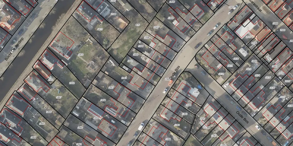 Het perceel waarop Oude Bos 13 staat heeft een oppervlakte van 189 m². Dit is een middelgroot perceel. De perceeloppervlakte wordt geregistreerd door het Kadaster. Gedetailleerde informatie over de maten van dit perceel kunt u vinden in het rapport Kadastrale kaart met maatvoering van Oude Bos 13.