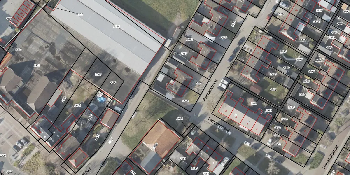 Gebruik de zoekbalk of klik op een perceel voor informatie over de adressen binnen dit perceel.