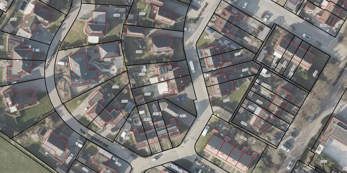 Gebruik de zoekbalk of klik op een perceel voor informatie over de adressen binnen dit perceel.