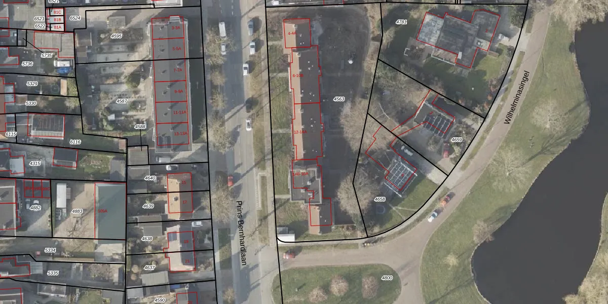 Het perceel waarop Prins Bernhardlaan 14-A staat heeft een oppervlakte van 2457 m². Dit is een zeer groot perceel. De perceeloppervlakte wordt geregistreerd door het Kadaster. Gedetailleerde informatie over de maten van dit perceel kunt u vinden in het rapport Kadastrale kaart met maatvoering van Prins Bernhardlaan 14-A.