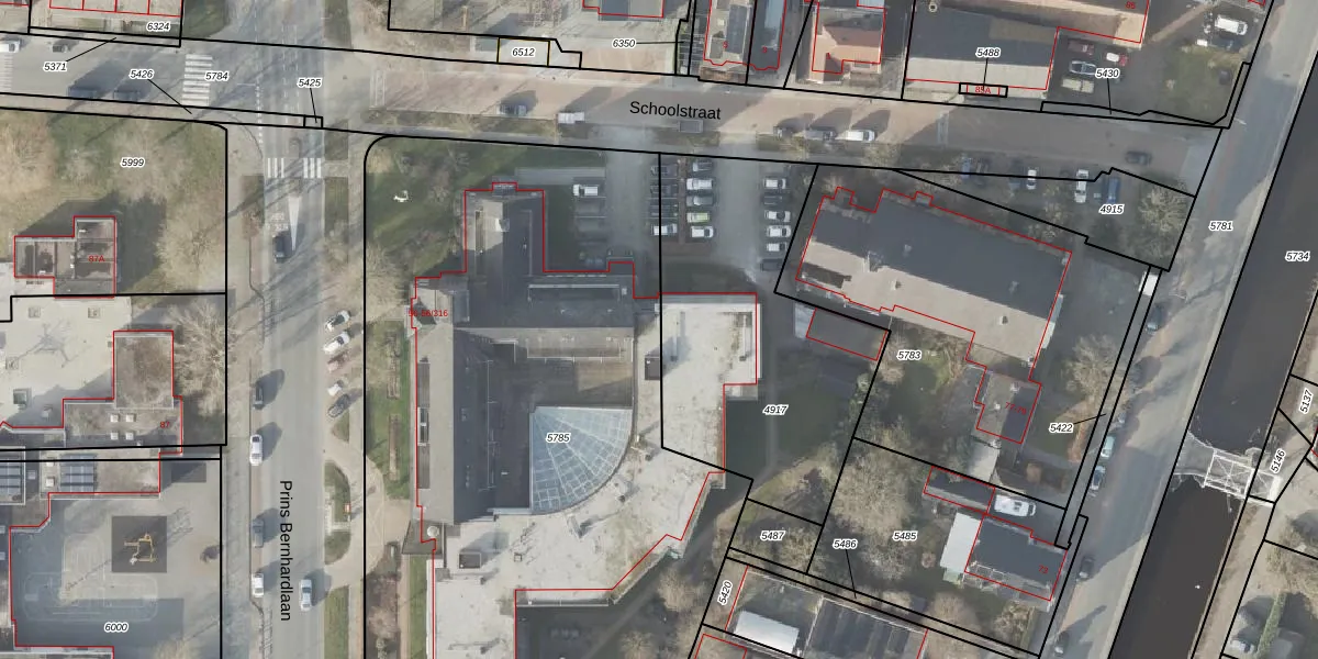 Het perceel waarop Prins Bernhardlaan 56-216 staat heeft een oppervlakte van 5369 m². Dit is een zeer groot perceel. De perceeloppervlakte wordt geregistreerd door het Kadaster. Gedetailleerde informatie over de maten van dit perceel kunt u vinden in het rapport Kadastrale kaart met maatvoering van Prins Bernhardlaan 56-216.