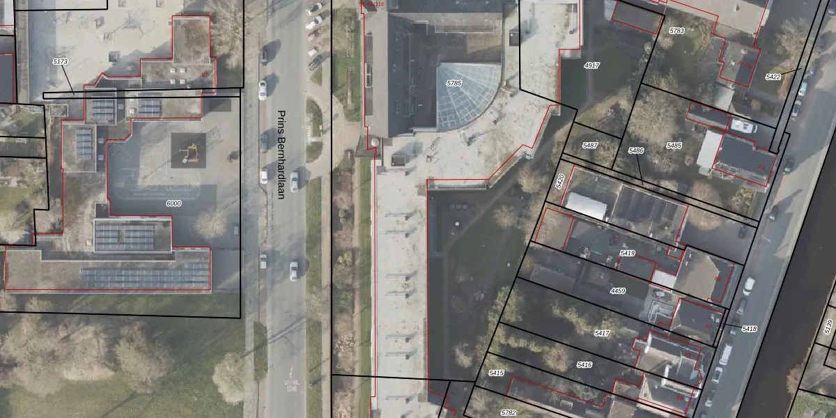 Het perceel waarop Prins Bernhardlaan 56-302 staat heeft een oppervlakte van 5369 m². Dit is een zeer groot perceel. De perceeloppervlakte wordt geregistreerd door het Kadaster. Gedetailleerde informatie over de maten van dit perceel kunt u vinden in het rapport Kadastrale kaart met maatvoering van Prins Bernhardlaan 56-302.