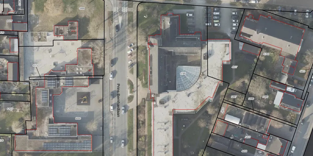 Het perceel waarop Prins Bernhardlaan 56-018 staat heeft een oppervlakte van 5369 m². Dit is een zeer groot perceel. De perceeloppervlakte wordt geregistreerd door het Kadaster. Gedetailleerde informatie over de maten van dit perceel kunt u vinden in het rapport Kadastrale kaart met maatvoering van Prins Bernhardlaan 56-018.