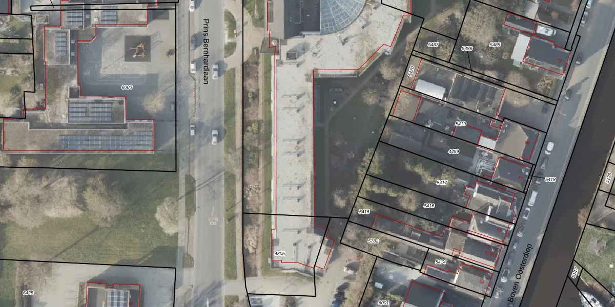 Het perceel waarop Prins Bernhardlaan 56-305 staat heeft een oppervlakte van 5369 m². Dit is een zeer groot perceel. De perceeloppervlakte wordt geregistreerd door het Kadaster. Gedetailleerde informatie over de maten van dit perceel kunt u vinden in het rapport Kadastrale kaart met maatvoering van Prins Bernhardlaan 56-305.