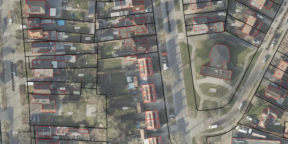 Het perceel waarop Prins Bernhardlaan 71 staat heeft een oppervlakte van 3100 m². Dit is een zeer groot perceel. De perceeloppervlakte wordt geregistreerd door het Kadaster. Gedetailleerde informatie over de maten van dit perceel kunt u vinden in het rapport Kadastrale kaart met maatvoering van Prins Bernhardlaan 71.