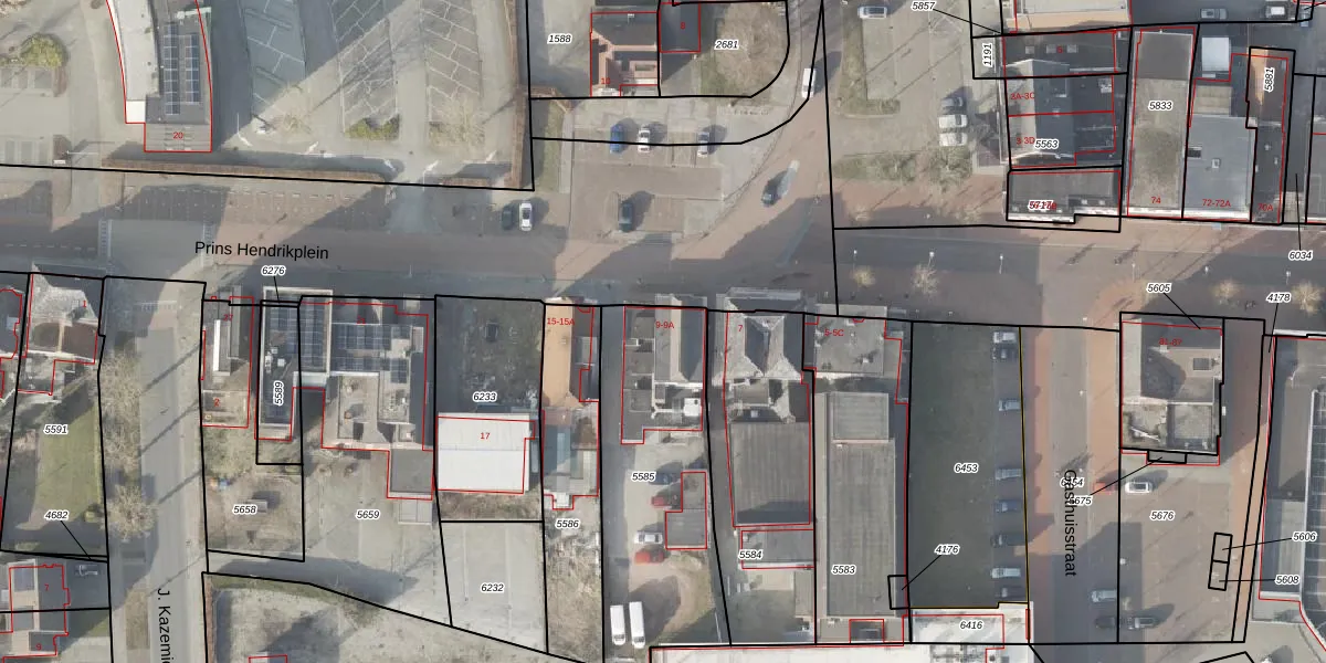 Het perceel waarop Prins Hendrikplein 9 staat heeft een oppervlakte van 890 m². Dit is een groot perceel. De perceeloppervlakte wordt geregistreerd door het Kadaster. Gedetailleerde informatie over de maten van dit perceel kunt u vinden in het rapport Kadastrale kaart met maatvoering van Prins Hendrikplein 9.