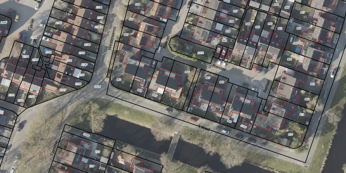 Gebruik de zoekbalk of klik op een perceel voor informatie over de adressen binnen dit perceel.