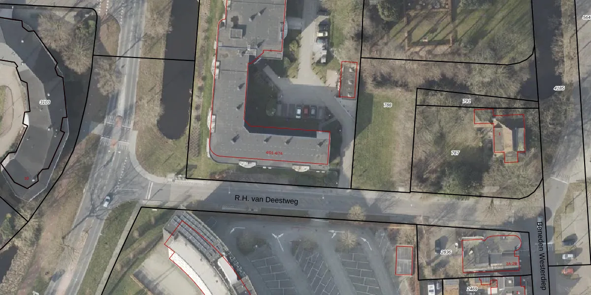 Het perceel waarop R.H. van Deestweg 4-22 staat heeft een oppervlakte van 8405 m². Dit is een zeer groot perceel. De perceeloppervlakte wordt geregistreerd door het Kadaster. Gedetailleerde informatie over de maten van dit perceel kunt u vinden in het rapport Kadastrale kaart met maatvoering van R.H. van Deestweg 4-22.