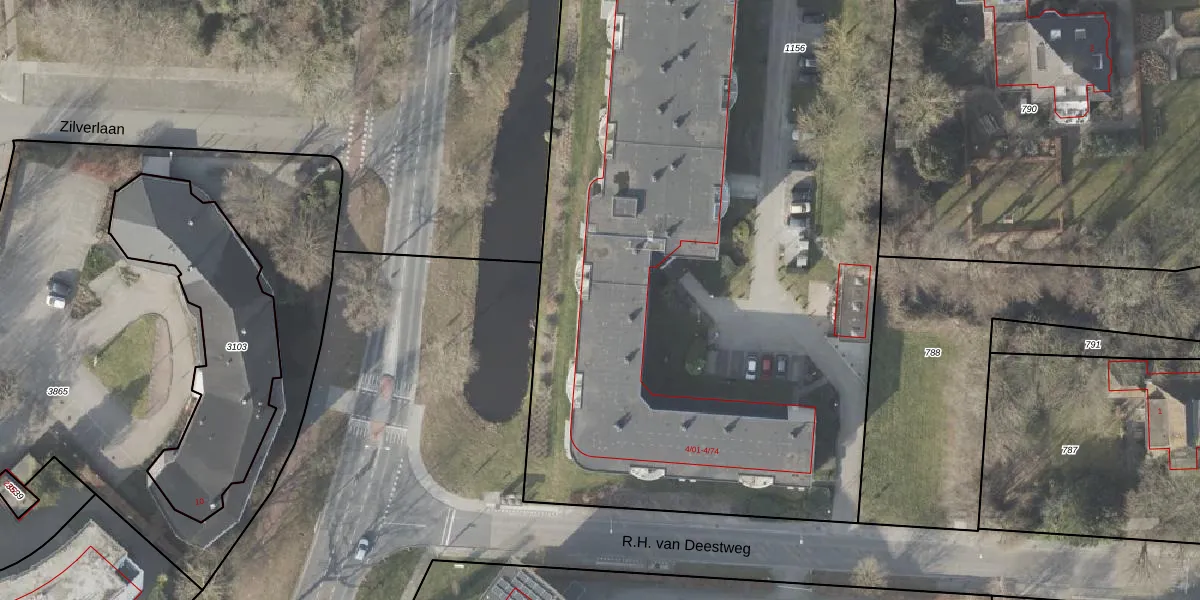 Het perceel waarop R.H. van Deestweg 4-07 staat heeft een oppervlakte van 8405 m². Dit is een zeer groot perceel. De perceeloppervlakte wordt geregistreerd door het Kadaster. Gedetailleerde informatie over de maten van dit perceel kunt u vinden in het rapport Kadastrale kaart met maatvoering van R.H. van Deestweg 4-07.