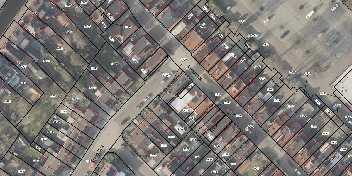 Gebruik de zoekbalk of klik op een perceel voor informatie over de adressen binnen dit perceel.