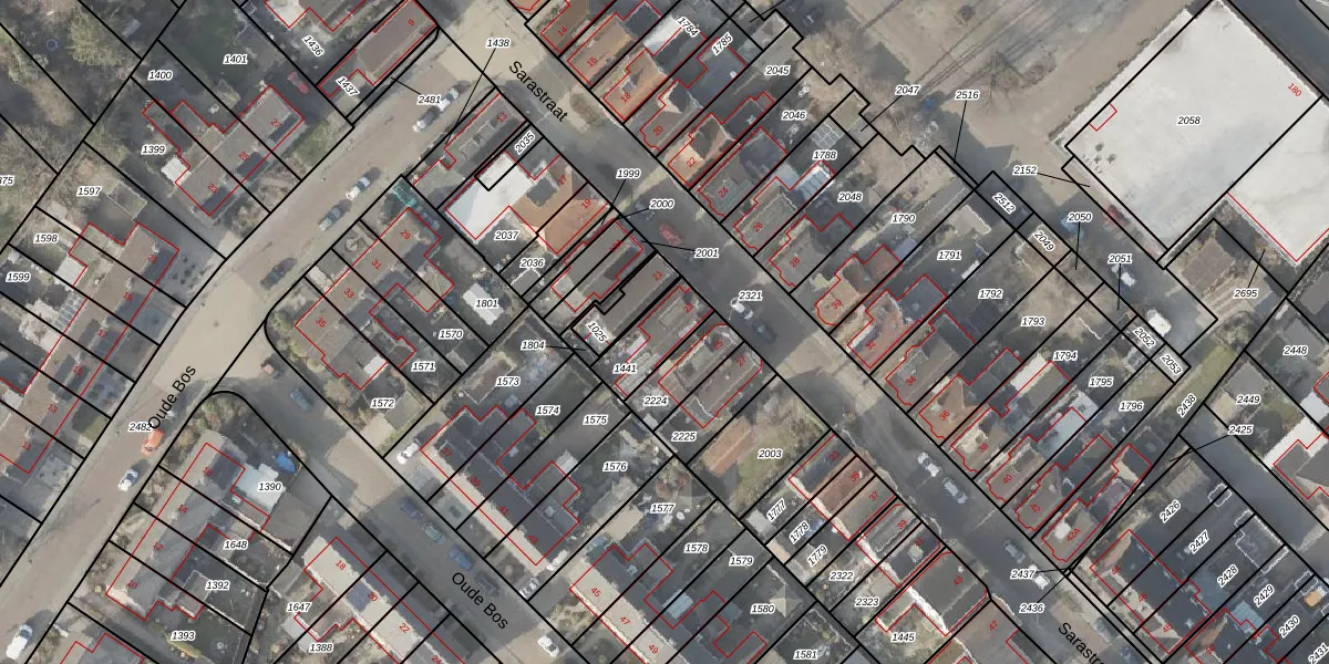 Gebruik de zoekbalk of klik op een perceel voor informatie over de adressen binnen dit perceel.
