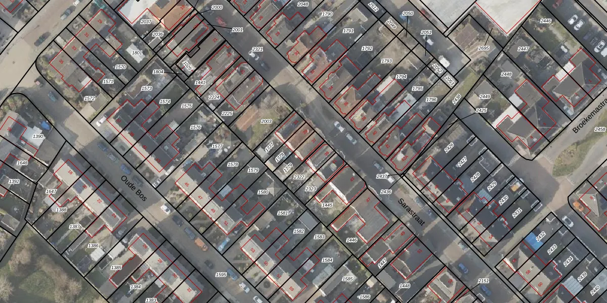 Gebruik de zoekbalk of klik op een perceel voor informatie over de adressen binnen dit perceel.