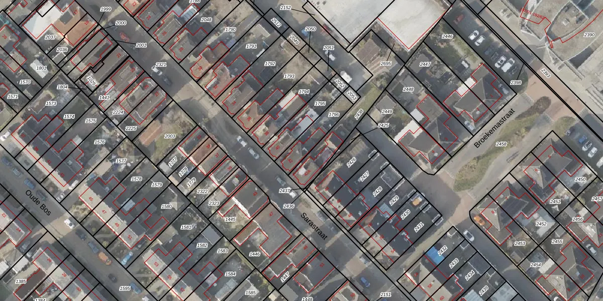 Gebruik de zoekbalk of klik op een perceel voor informatie over de adressen binnen dit perceel.