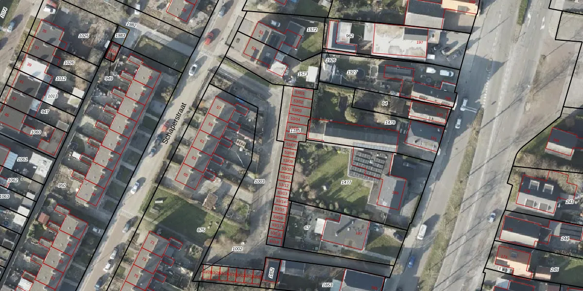 Schaperstraat 53-07 is gelegen op kadastraal perceel VDM00L1185. Deze kadastrale aanduiding is uniek en wordt gebruikt door het Kadaster om eigendomsrechten en andere zakelijke rechten vast te leggen. Het perceel maakt onderdeel uit van de kadastrale gemeente Veendam.
