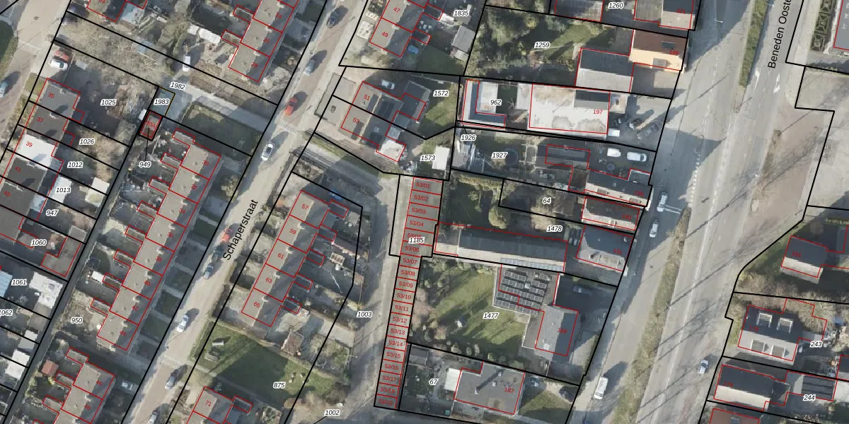 Schaperstraat 53-03 is gelegen op kadastraal perceel VDM00L1185. Deze kadastrale aanduiding is uniek en wordt gebruikt door het Kadaster om eigendomsrechten en andere zakelijke rechten vast te leggen. Het perceel maakt onderdeel uit van de kadastrale gemeente Veendam.