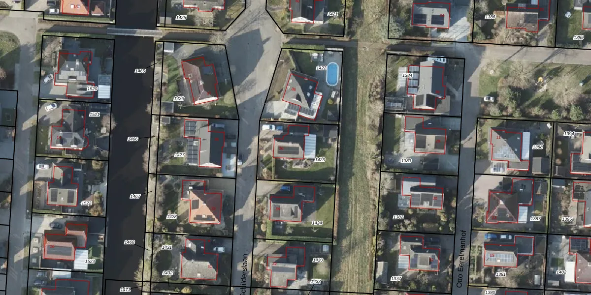 Het perceel waarop Schilderslaan 36 staat heeft een oppervlakte van 537 m². Dit is een groot perceel. De perceeloppervlakte wordt geregistreerd door het Kadaster. Gedetailleerde informatie over de maten van dit perceel kunt u vinden in het rapport Kadastrale kaart met maatvoering van Schilderslaan 36.