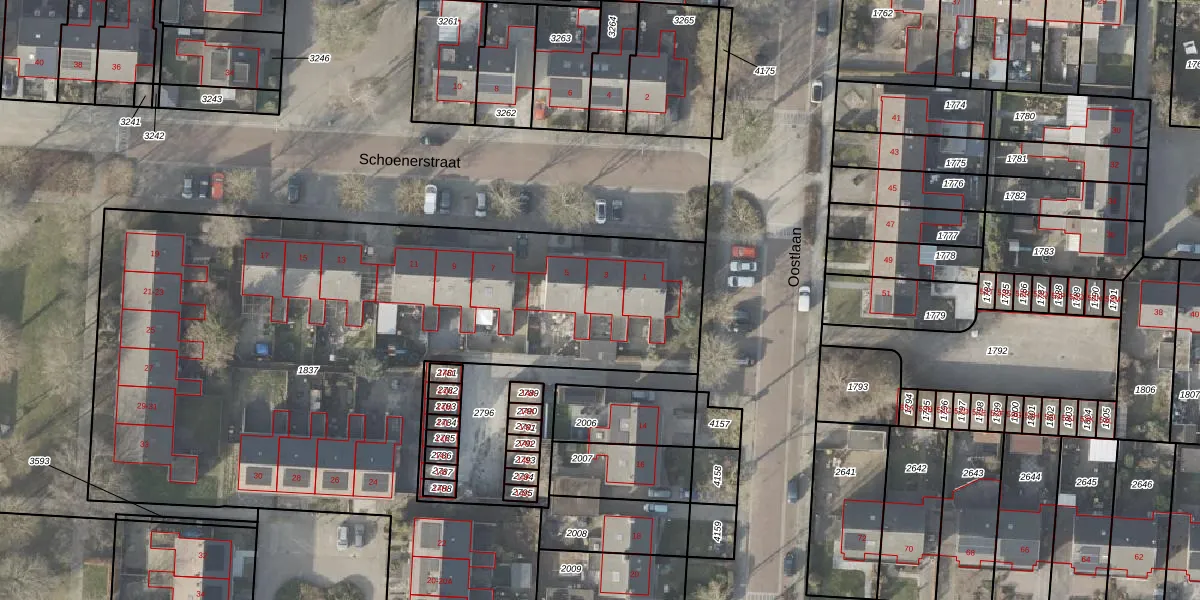 Het perceel waarop Schoenerstraat 3 staat heeft een oppervlakte van 5613 m². Dit is een zeer groot perceel. De perceeloppervlakte wordt geregistreerd door het Kadaster. Gedetailleerde informatie over de maten van dit perceel kunt u vinden in het rapport Kadastrale kaart met maatvoering van Schoenerstraat 3.