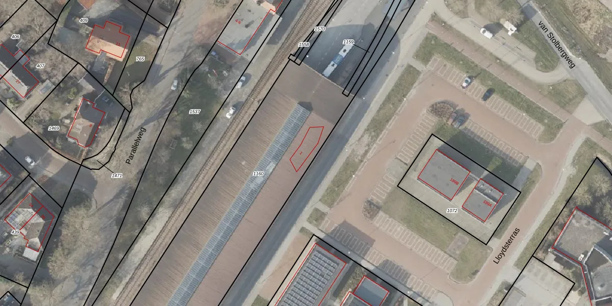 Het perceel waarop Spoorweg 1 staat heeft een oppervlakte van 4816 m². Dit is een zeer groot perceel. De perceeloppervlakte wordt geregistreerd door het Kadaster. Gedetailleerde informatie over de maten van dit perceel kunt u vinden in het rapport Kadastrale kaart met maatvoering van Spoorweg 1.
