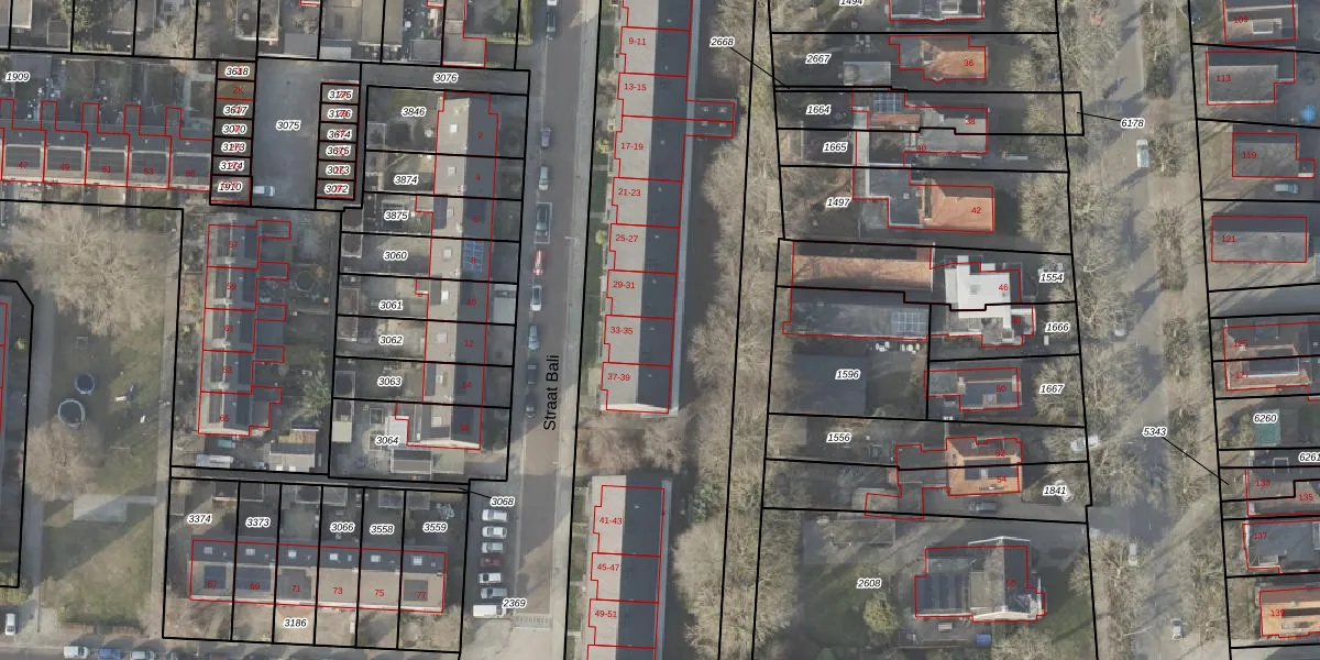 Het perceel waarop Straat Bali 35 staat heeft een oppervlakte van 6959 m². Dit is een zeer groot perceel. De perceeloppervlakte wordt geregistreerd door het Kadaster. Gedetailleerde informatie over de maten van dit perceel kunt u vinden in het rapport Kadastrale kaart met maatvoering van Straat Bali 35.