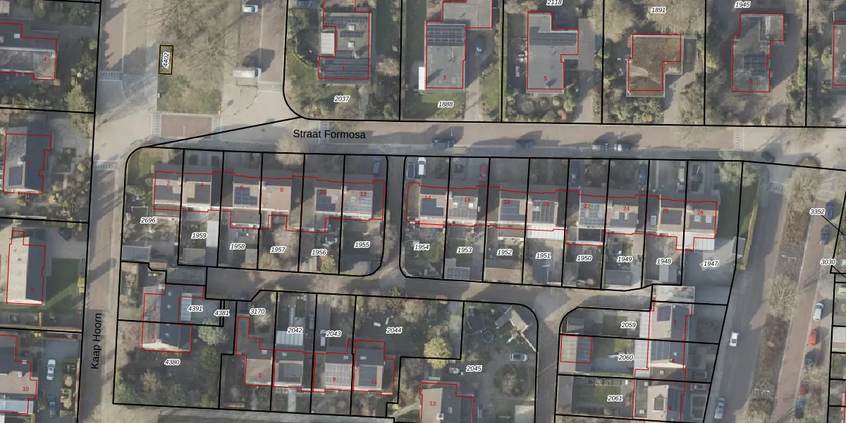 Straat Formosa 14 is gelegen op kadastraal perceel VDM00C1954. Deze kadastrale aanduiding is uniek en wordt gebruikt door het Kadaster om eigendomsrechten en andere zakelijke rechten vast te leggen. Het perceel maakt onderdeel uit van de kadastrale gemeente Veendam.