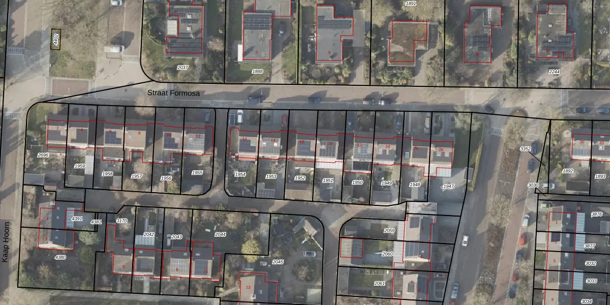 Gebruik de zoekbalk of klik op een perceel voor informatie over de adressen binnen dit perceel.