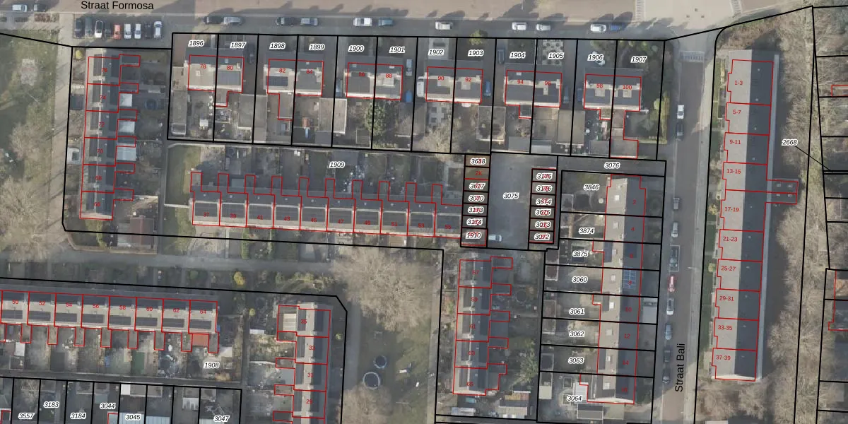 Het perceel waarop Straat Malakka 53 staat heeft een oppervlakte van 3612 m². Dit is een zeer groot perceel. De perceeloppervlakte wordt geregistreerd door het Kadaster. Gedetailleerde informatie over de maten van dit perceel kunt u vinden in het rapport Kadastrale kaart met maatvoering van Straat Malakka 53.