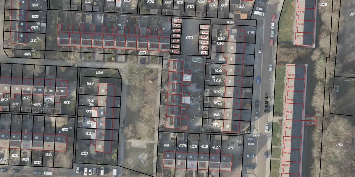 Het perceel waarop Straat Soenda 61 staat heeft een oppervlakte van 2659 m². Dit is een zeer groot perceel. De perceeloppervlakte wordt geregistreerd door het Kadaster. Gedetailleerde informatie over de maten van dit perceel kunt u vinden in het rapport Kadastrale kaart met maatvoering van Straat Soenda 61.