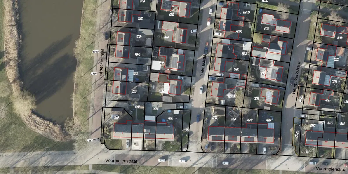 Het perceel waarop Talmastraat 108 staat heeft een oppervlakte van 387 m². Dit is een groot perceel. De perceeloppervlakte wordt geregistreerd door het Kadaster. Gedetailleerde informatie over de maten van dit perceel kunt u vinden in het rapport Kadastrale kaart met maatvoering van Talmastraat 108.