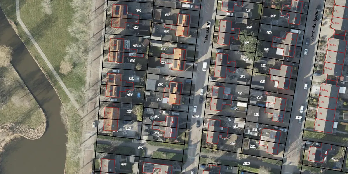 Gebruik de zoekbalk of klik op een perceel voor informatie over de adressen binnen dit perceel.