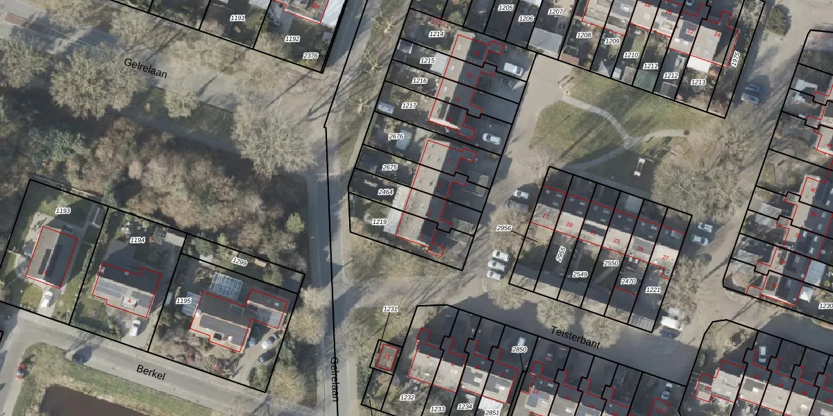 Het perceel waarop Teisterbant 3 staat heeft een oppervlakte van 199 m². Dit is een middelgroot perceel. De perceeloppervlakte wordt geregistreerd door het Kadaster. Gedetailleerde informatie over de maten van dit perceel kunt u vinden in het rapport Kadastrale kaart met maatvoering van Teisterbant 3.