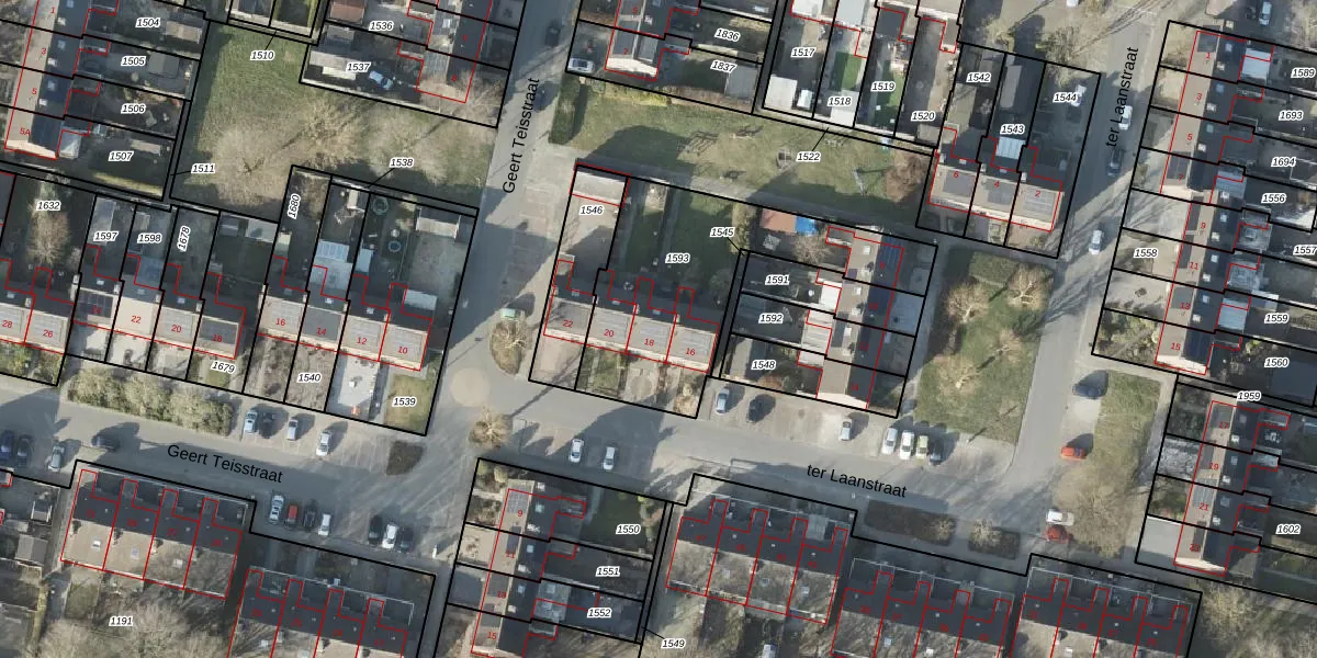 Het perceel waarop ter Laanstraat 18 staat heeft een oppervlakte van 872 m². Dit is een groot perceel. De perceeloppervlakte wordt geregistreerd door het Kadaster. Gedetailleerde informatie over de maten van dit perceel kunt u vinden in het rapport Kadastrale kaart met maatvoering van ter Laanstraat 18.