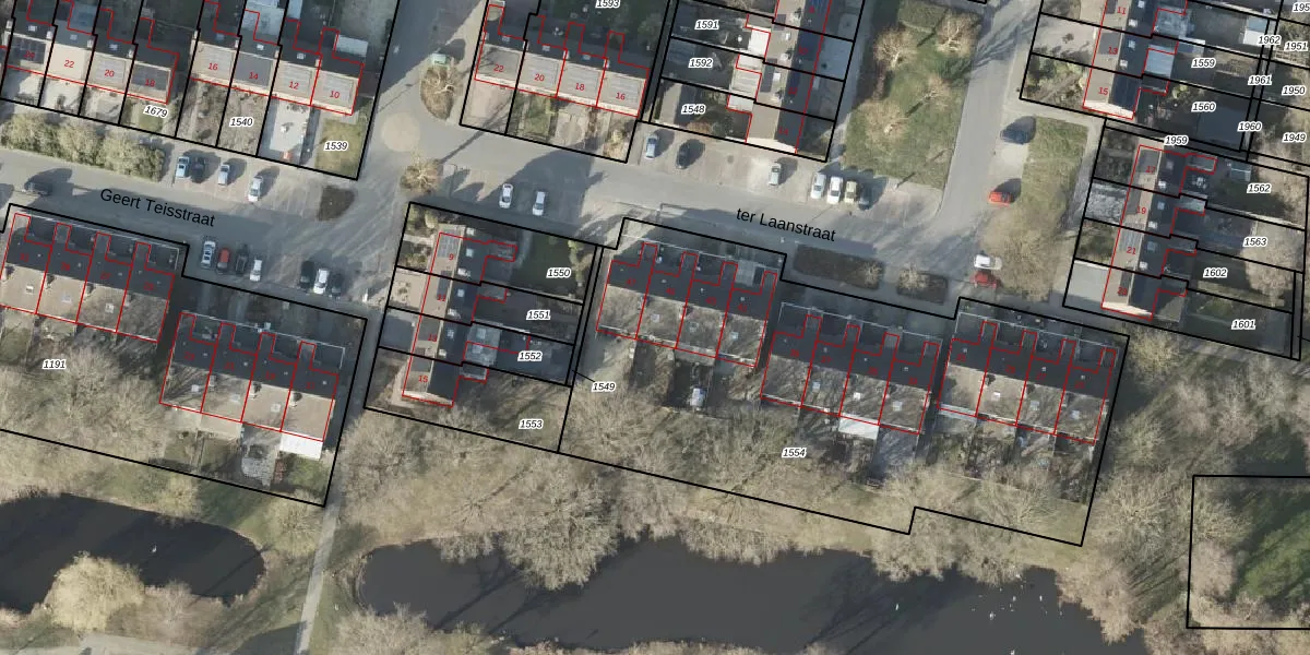 Het perceel waarop ter Laanstraat 45 staat heeft een oppervlakte van 2788 m². Dit is een zeer groot perceel. De perceeloppervlakte wordt geregistreerd door het Kadaster. Gedetailleerde informatie over de maten van dit perceel kunt u vinden in het rapport Kadastrale kaart met maatvoering van ter Laanstraat 45.