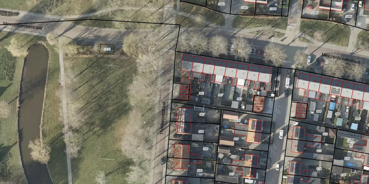 Het perceel waarop Thorbeckestraat 107-B staat heeft een oppervlakte van 82 m². Dit is een klein perceel. De perceeloppervlakte wordt geregistreerd door het Kadaster. Gedetailleerde informatie over de maten van dit perceel kunt u vinden in het rapport Kadastrale kaart met maatvoering van Thorbeckestraat 107-B.