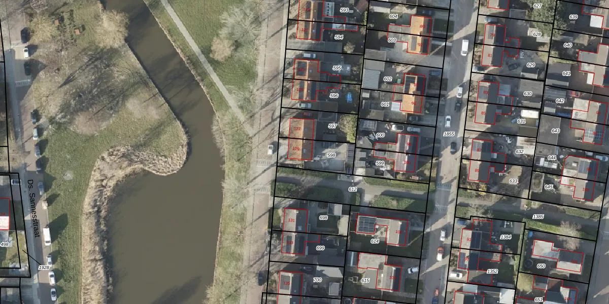 Gebruik de zoekbalk of klik op een perceel voor informatie over de adressen binnen dit perceel.