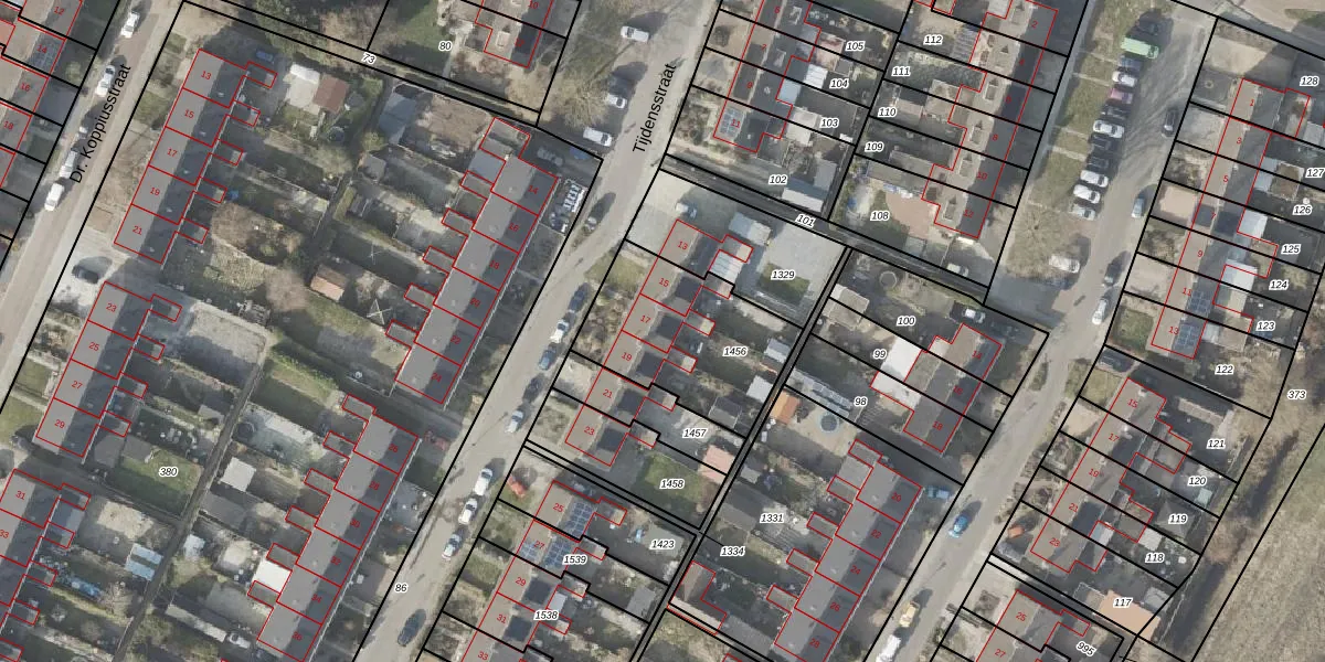 Het perceel waarop Tijdensstraat 17 staat heeft een oppervlakte van 558 m². Dit is een groot perceel. De perceeloppervlakte wordt geregistreerd door het Kadaster. Gedetailleerde informatie over de maten van dit perceel kunt u vinden in het rapport Kadastrale kaart met maatvoering van Tijdensstraat 17.