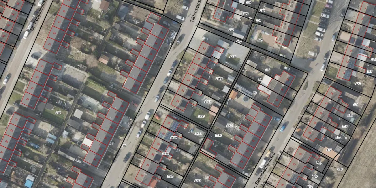 Het perceel waarop Tijdensstraat 21 staat heeft een oppervlakte van 185 m². Dit is een middelgroot perceel. De perceeloppervlakte wordt geregistreerd door het Kadaster. Gedetailleerde informatie over de maten van dit perceel kunt u vinden in het rapport Kadastrale kaart met maatvoering van Tijdensstraat 21.