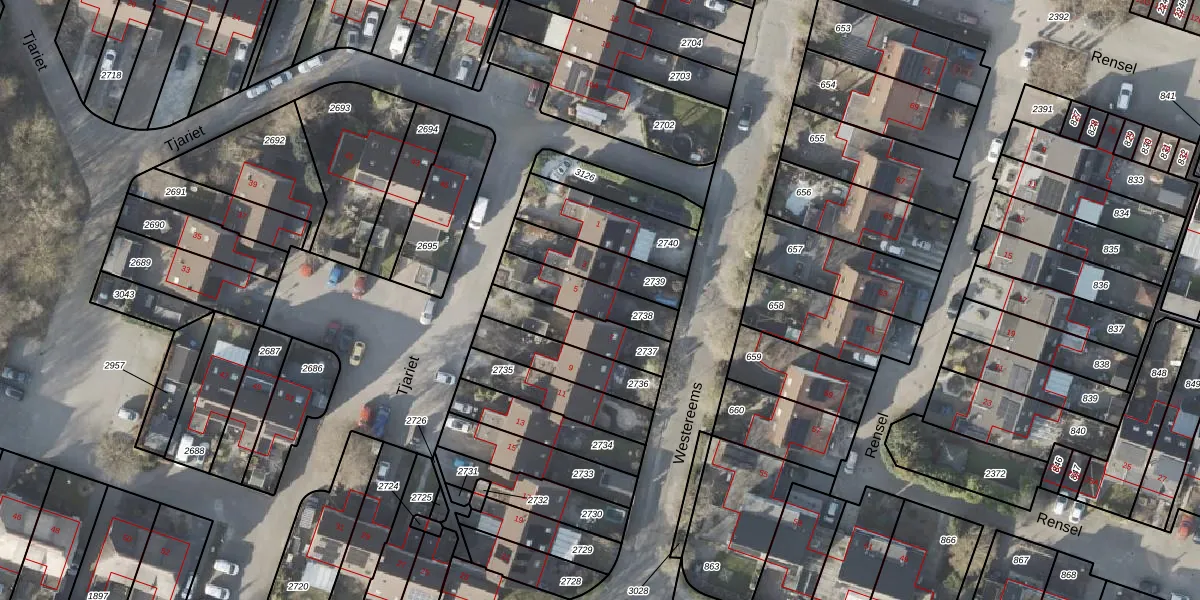 Het perceel waarop Tjariet 5 staat heeft een oppervlakte van 177 m². Dit is een middelgroot perceel. De perceeloppervlakte wordt geregistreerd door het Kadaster. Gedetailleerde informatie over de maten van dit perceel kunt u vinden in het rapport Kadastrale kaart met maatvoering van Tjariet 5.