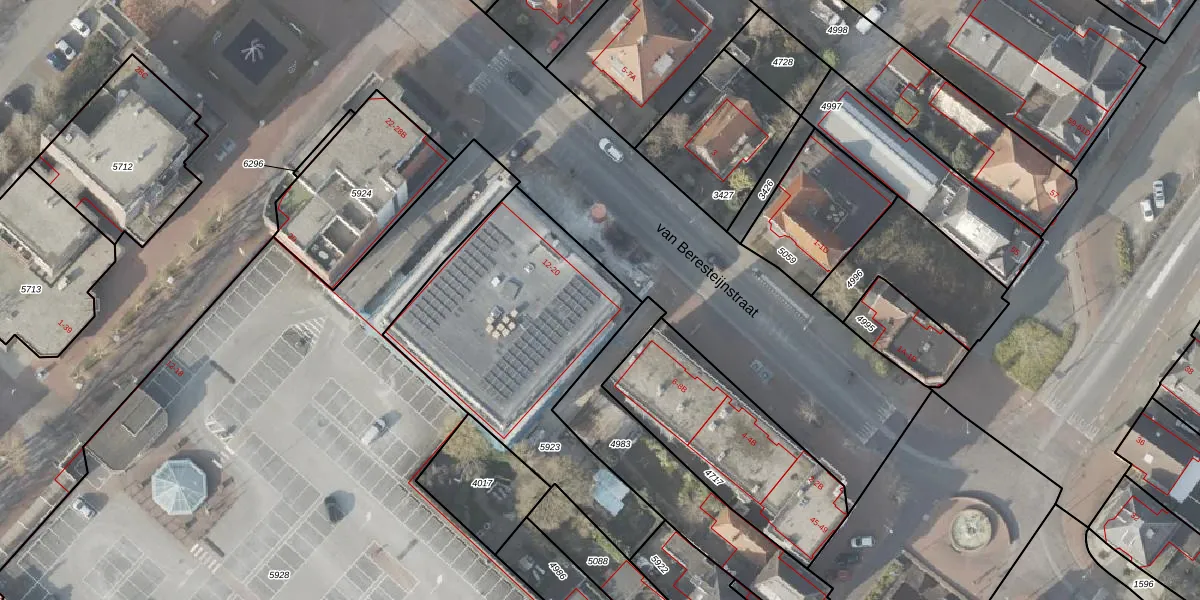 Het perceel waarop van Beresteijnstraat 12-A staat heeft een oppervlakte van 1230 m². Dit is een zeer groot perceel. De perceeloppervlakte wordt geregistreerd door het Kadaster. Gedetailleerde informatie over de maten van dit perceel kunt u vinden in het rapport Kadastrale kaart met maatvoering van van Beresteijnstraat 12-A.