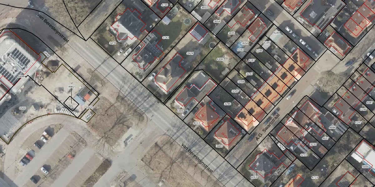 Het perceel waarop van Beresteijnstraat 27 staat heeft een oppervlakte van 365 m². Dit is een groot perceel. De perceeloppervlakte wordt geregistreerd door het Kadaster. Gedetailleerde informatie over de maten van dit perceel kunt u vinden in het rapport Kadastrale kaart met maatvoering van van Beresteijnstraat 27.