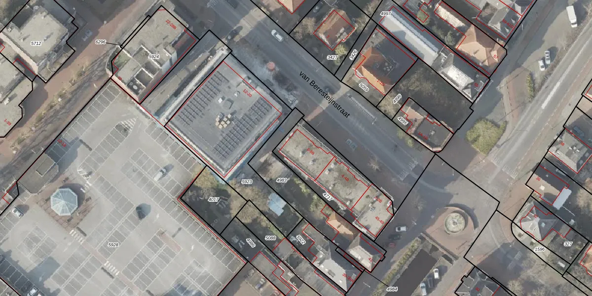 Het perceel waarop van Beresteijnstraat 8-A staat heeft een oppervlakte van 685 m². Dit is een groot perceel. De perceeloppervlakte wordt geregistreerd door het Kadaster. Gedetailleerde informatie over de maten van dit perceel kunt u vinden in het rapport Kadastrale kaart met maatvoering van van Beresteijnstraat 8-A.