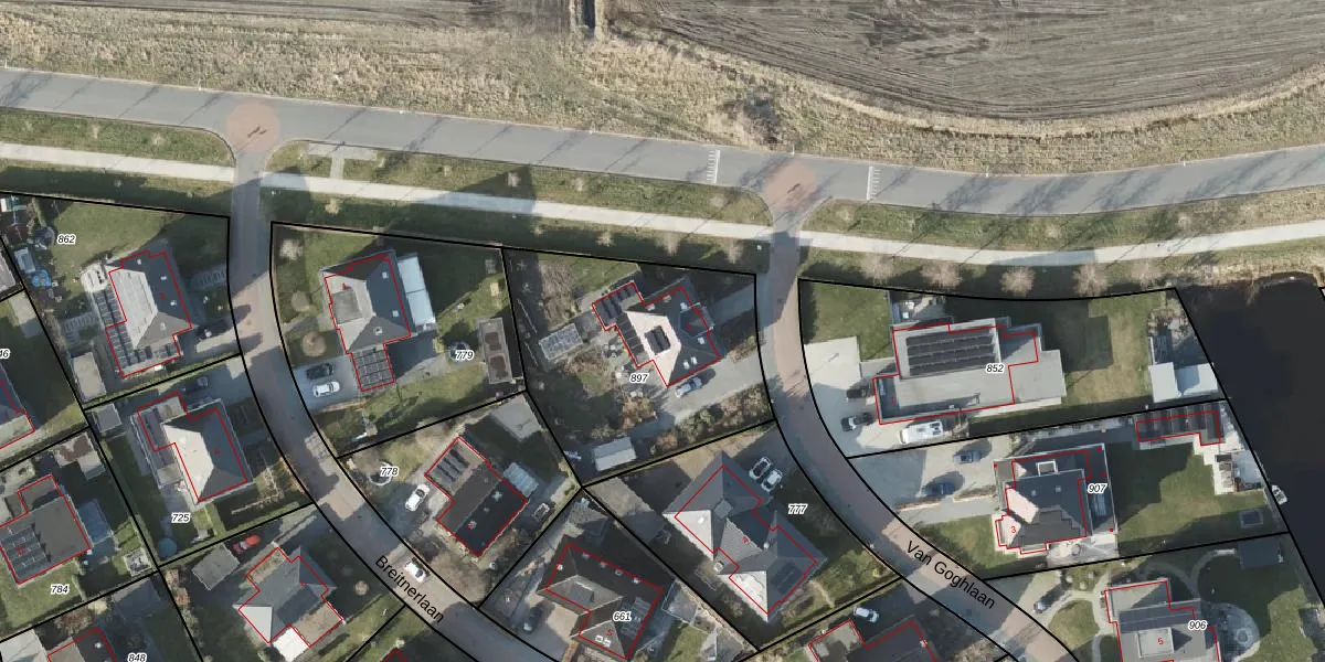 Gebruik de zoekbalk of klik op een perceel voor informatie over de adressen binnen dit perceel.